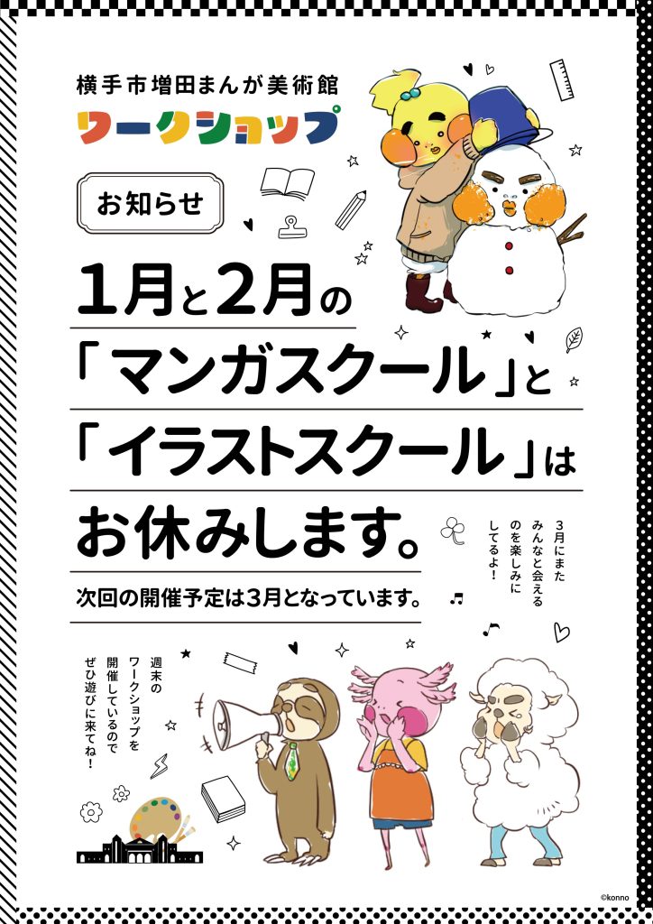 1月と2月の「マンガスクール」「イラストスクール」はお休みします。