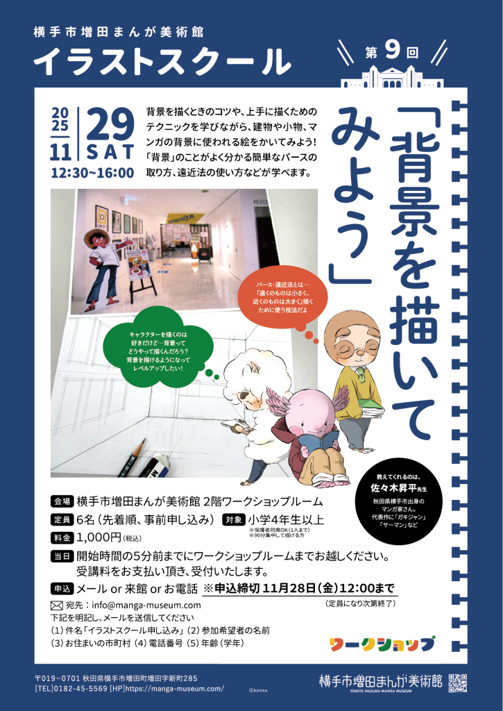 【お申込み方法】メール(info@manga-museum.com)、または、来館時インフォメーションやお電話でも受付しております。