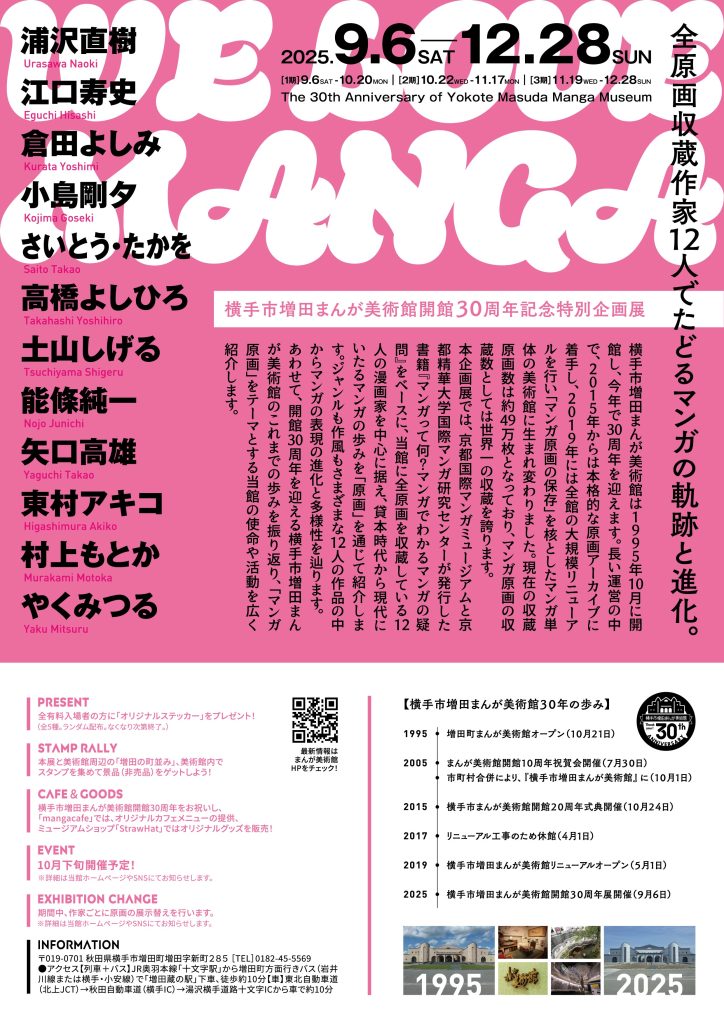 あわせて、開館30周年を迎える横手市増田まんが美術館のこれまでの歩みを振り返り、「マンガ原画」をテーマとする当館の使命や活動を広く紹介します。