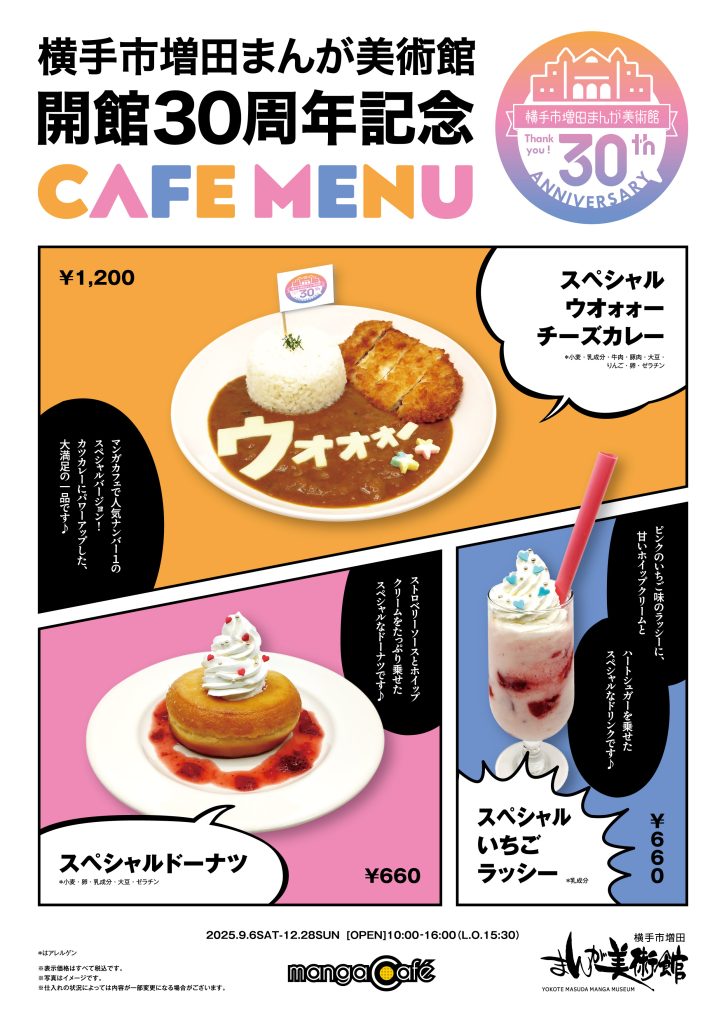 マンガカフェでは、まんが美術館開館30周年記念として、スペシャルメニューをご提供いたします!