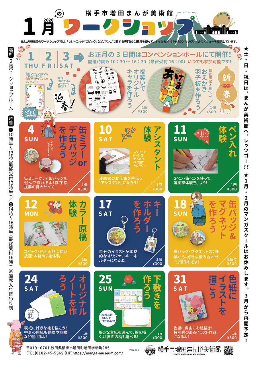 1月12日(月・祝)「カラー原稿体験」(¥300)