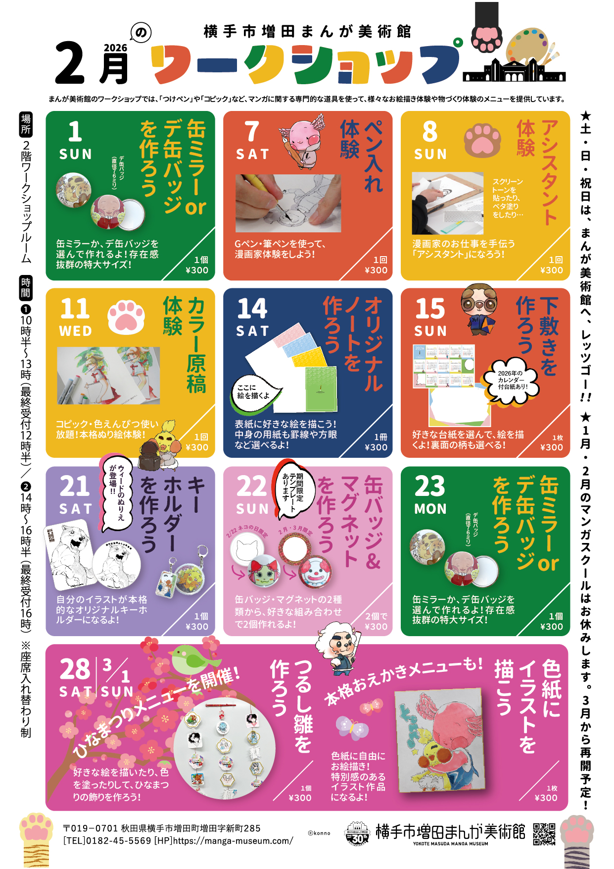 2月11日(水・祝)「カラー原稿体験」(¥300)